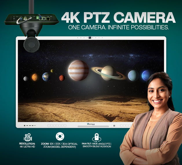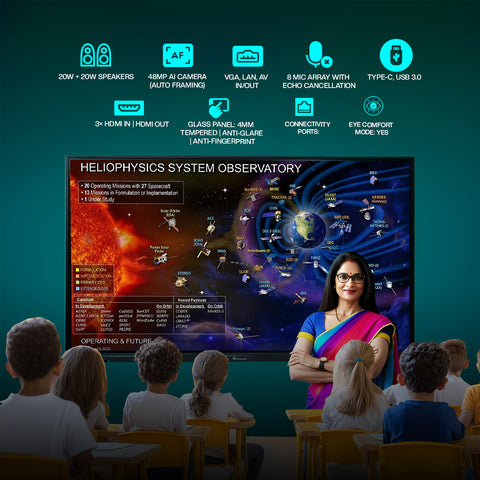 - Online Class Setup: Teachers can record, annotate, explain with diagrams, and live stream classes directly from the panel, turning any space into a virtual classroom.