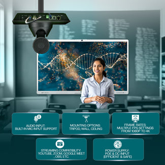From teaching studios to YouTube, podcasts, and hybrid classrooms — Benchmark Technomate delivers complete smart studio setups powered by interactive flat panels, 4K PTZ cameras, pro microphones, and acoustic solutions. Designed for teachers and creators who want effortless, high‑quality content delivery.