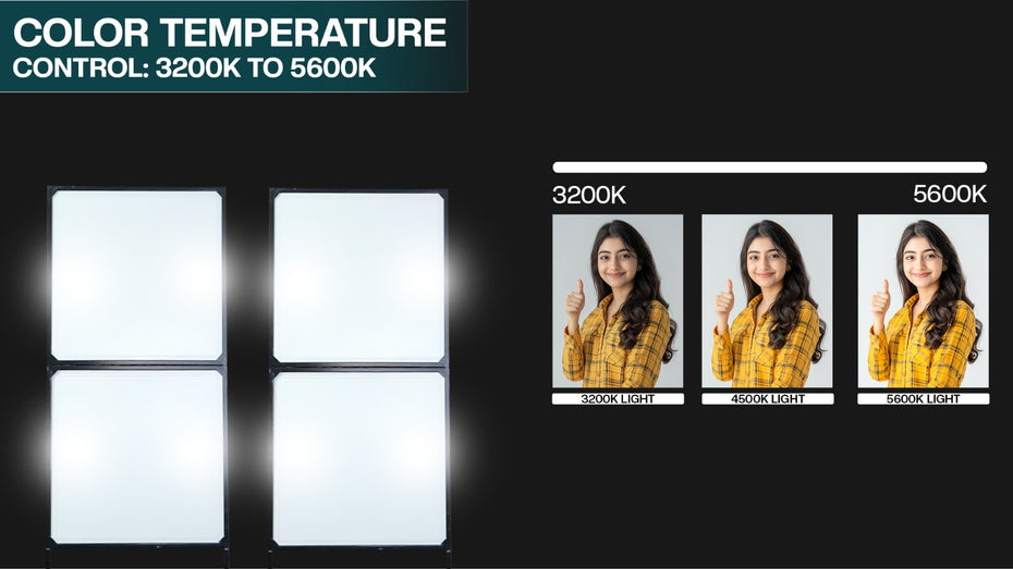 Adjust your tone with color temperature control from 3200K to 5600K. Match any environment – indoor, outdoor, or mixed lighting conditions. Get the right color balance for natural-looking skin tones and visuals.