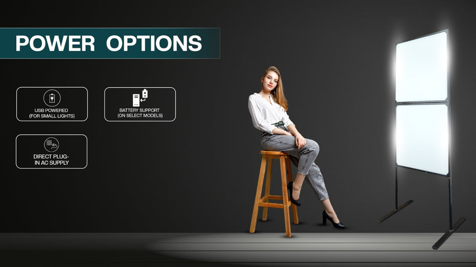 Choose between USB power (for smaller models), battery operation (select variants), or direct plug-in AC power for continuous use. Built to adapt to studios, outdoor shoots, and on-the-go production.