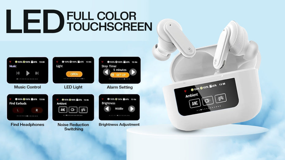 - Smart Touch Screen Case: Control volume, alarms, EQ, ANC, and music playback — all from the interactive display on the case without touching your phone.